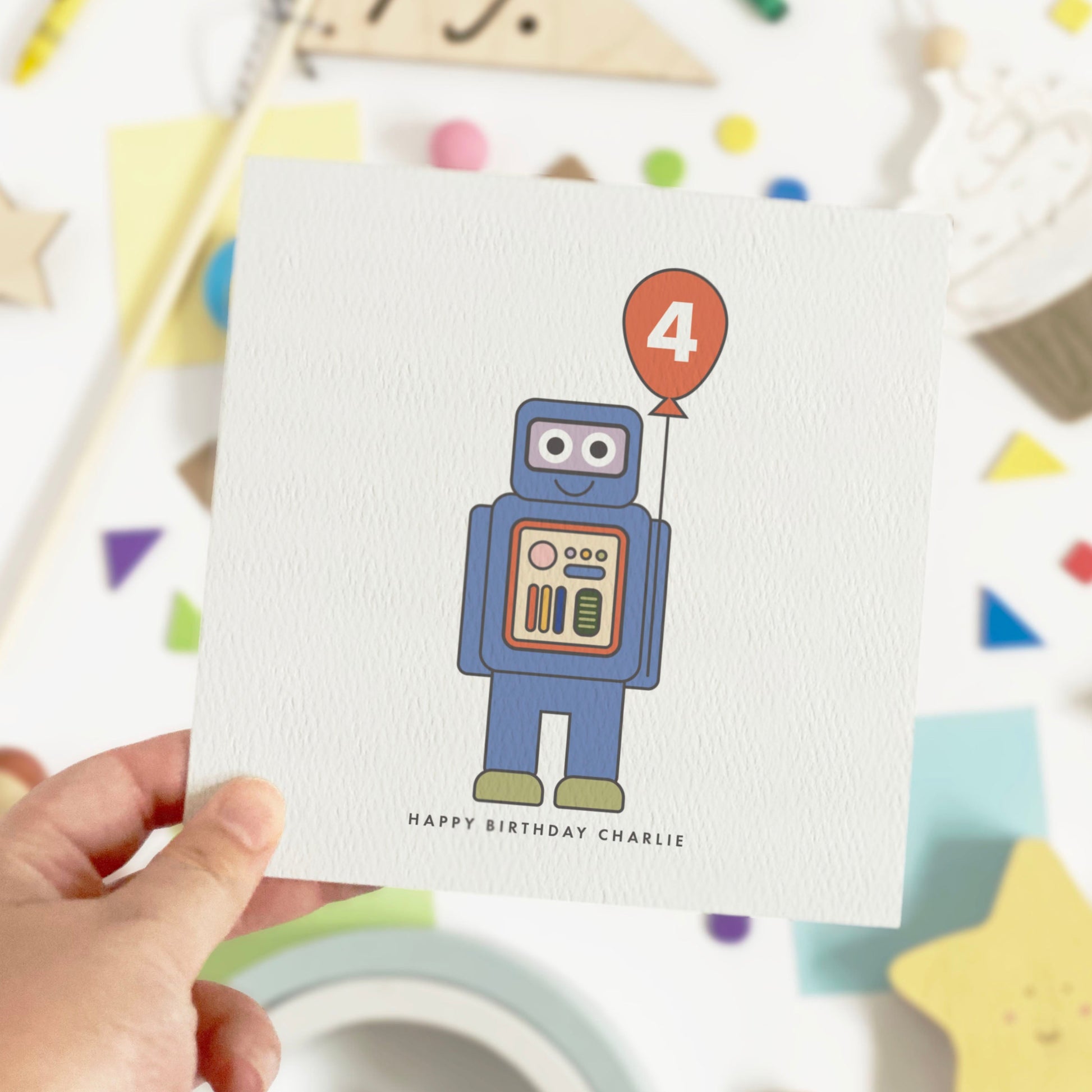 Celebrate their special day with this fun robot birthday card featuring a vibrant robot illustration. A card that's sure to bring a smile to any child's face on their birthday.