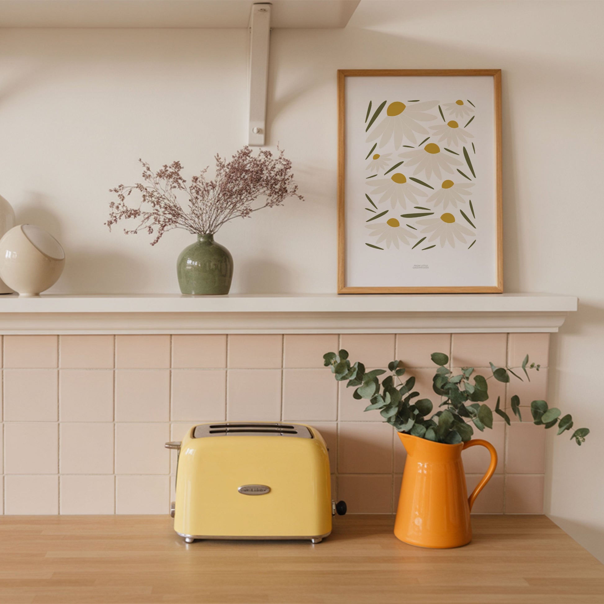 Transform any space into a garden of tranquility with this delicate daisy flowers illustration print. Whether you want to add a touch of timeless sophistication to the walls of a bedroom, living space or even a nursery, this refined floral design will provide a breath of fresh air and a touch of natural elegance to your home all year round.