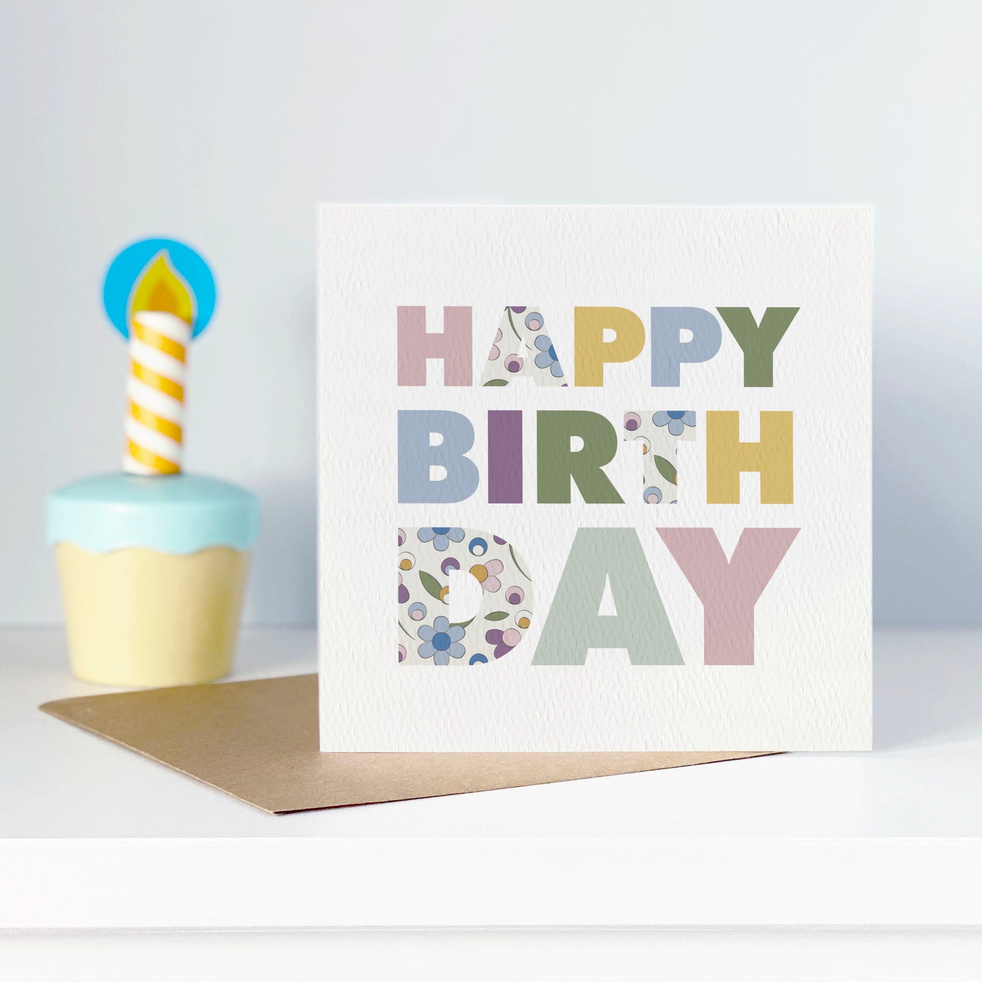 Wish her a happy birthday with this elegant greetings card in pretty pastels, with delicate ditsy flower details. She will love this floral birthday card, beautifully designed to bring joy to her special day.