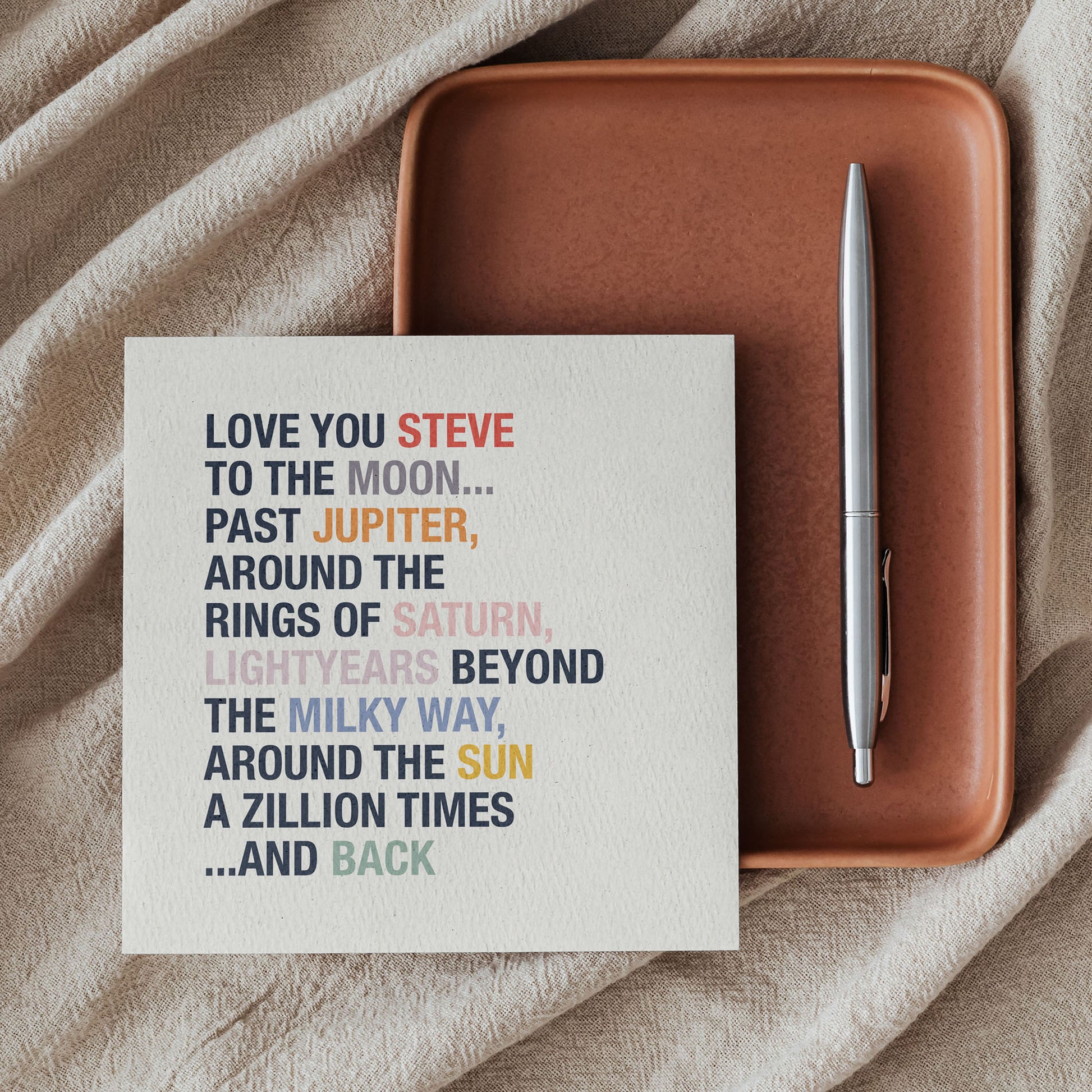 This playful Love You to the Moon ... & Beyond anniversary card is perfect for declaring your love for that special someone.