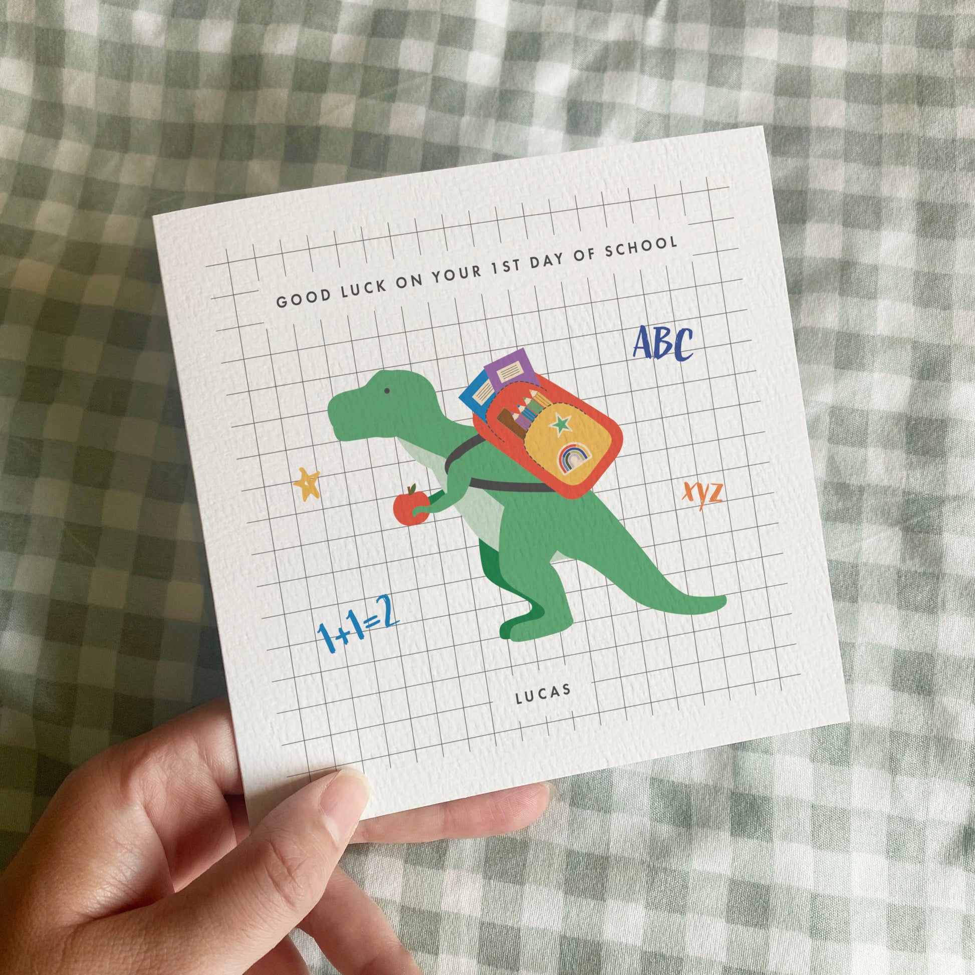 This high-quality, vibrant card with a fun and colourful T-Rex design can be tailored with your child’s name, school and date, making their first day even more memorable. Ideal for parents, grandparents, and teachers looking to create a heartfelt keepsake.