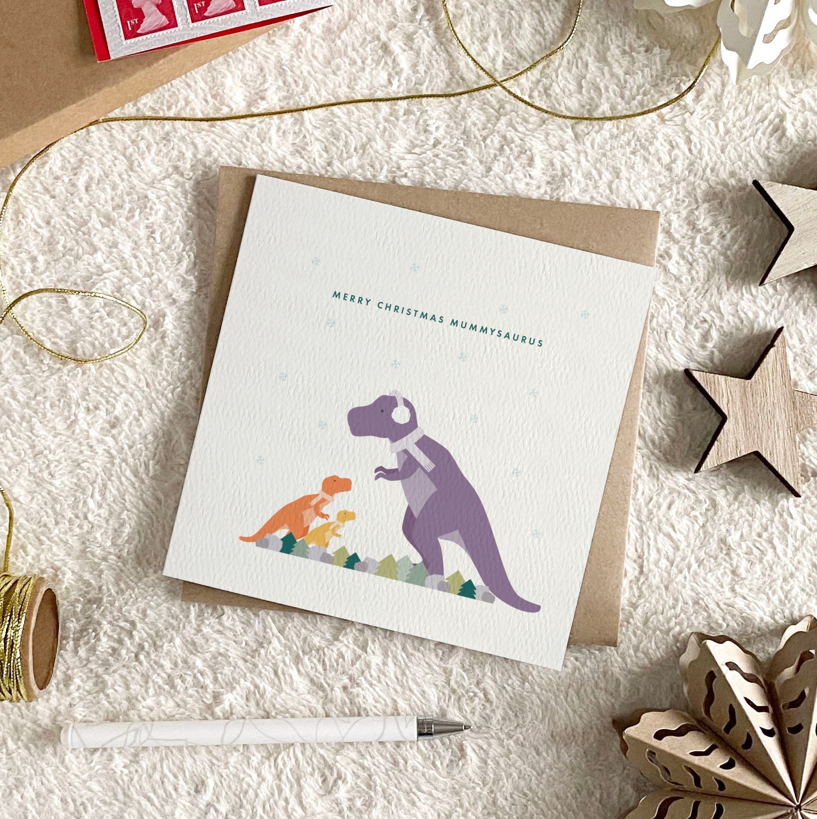 Personalised Dinosaur Christmas Card for Mummy from the Kids