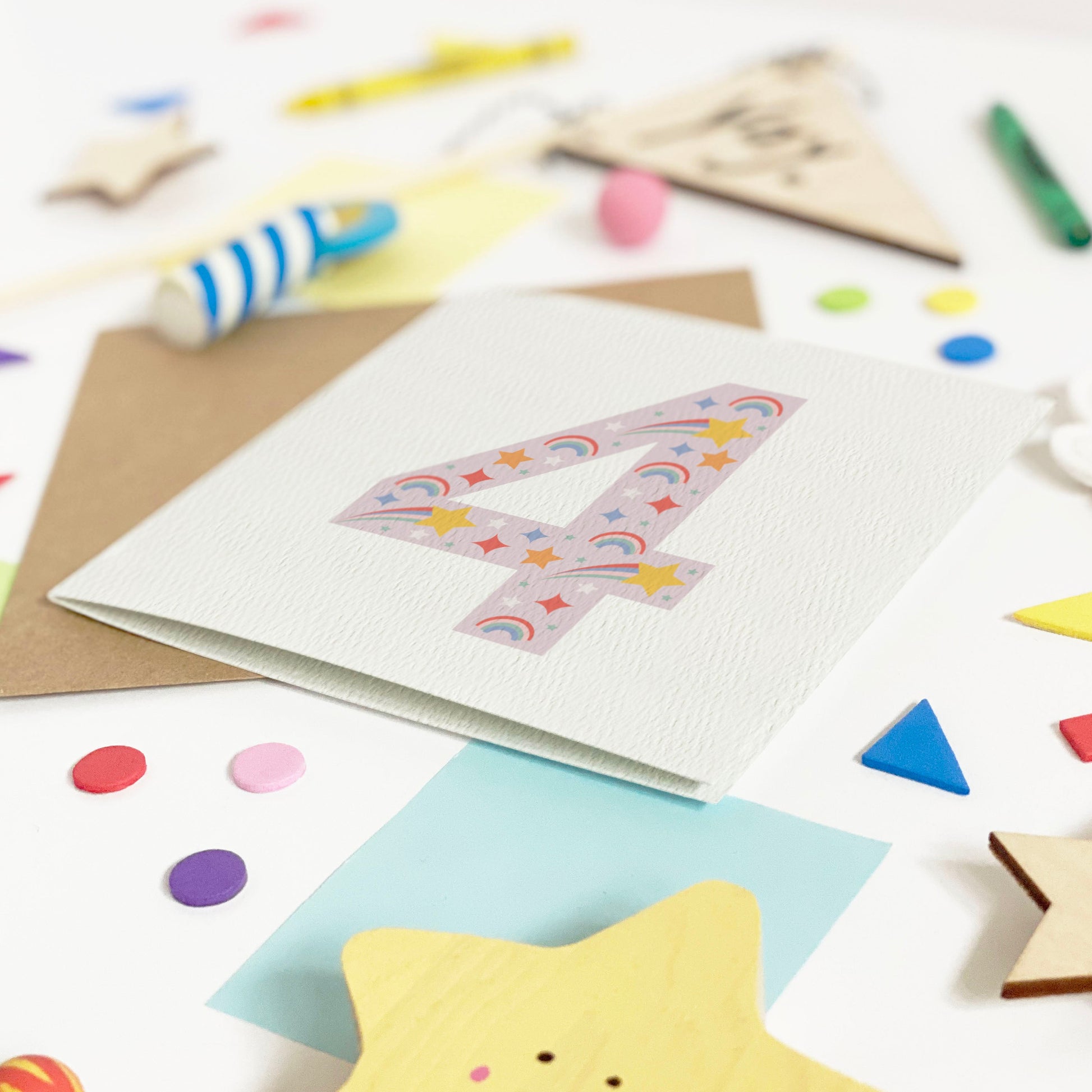 A kid's card for all ages in pretty pastels and lilac. Choose any number from 1 to 101, and personalise it with their name for an extra special keepsake card to be treasured. With shooting stars and rainbows adding that extra girly magic to their celebrations.