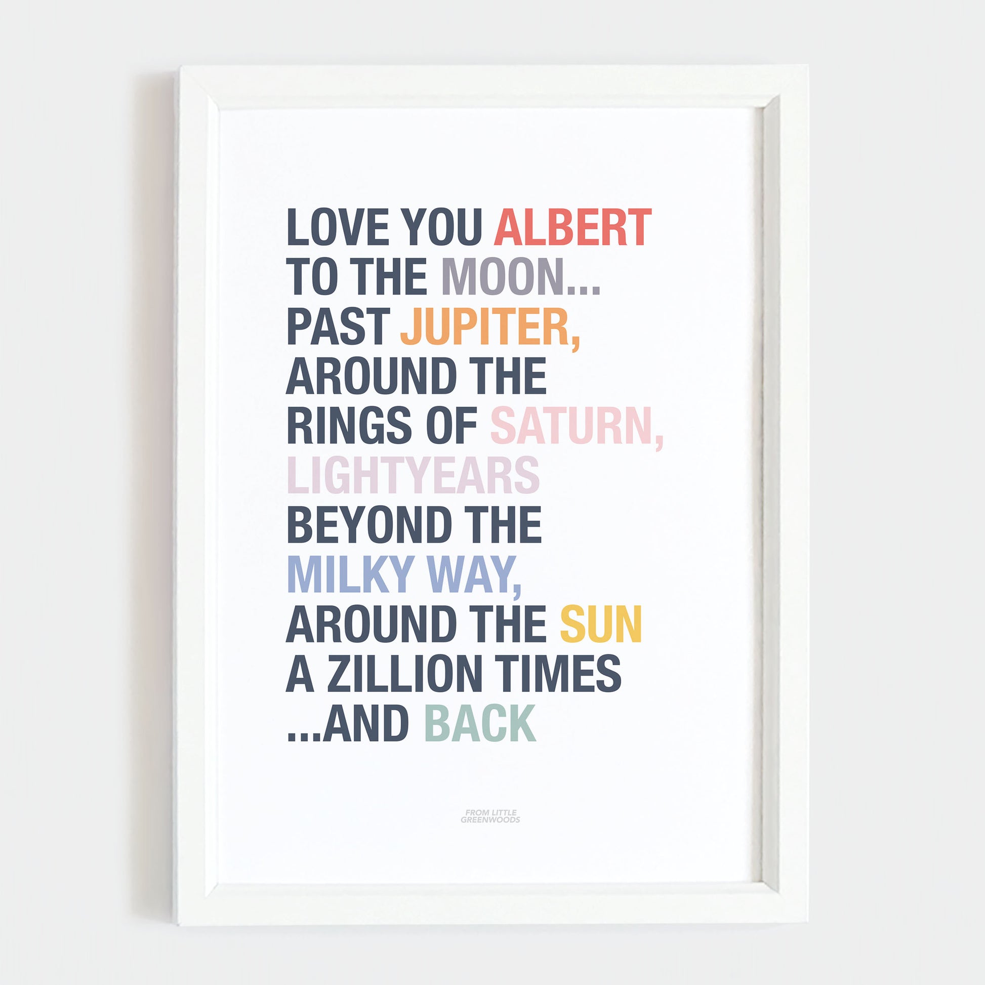 Ensure they know just how loved they are with this positive children's wall art. Thoughtfully designed to encourage self confidence and ignite their imagination, these empowering words with a playful space twist, celebrate the special bond between you and your child. Make reciting it together part of your daily routine and create lasting memories with your little one as they grow.