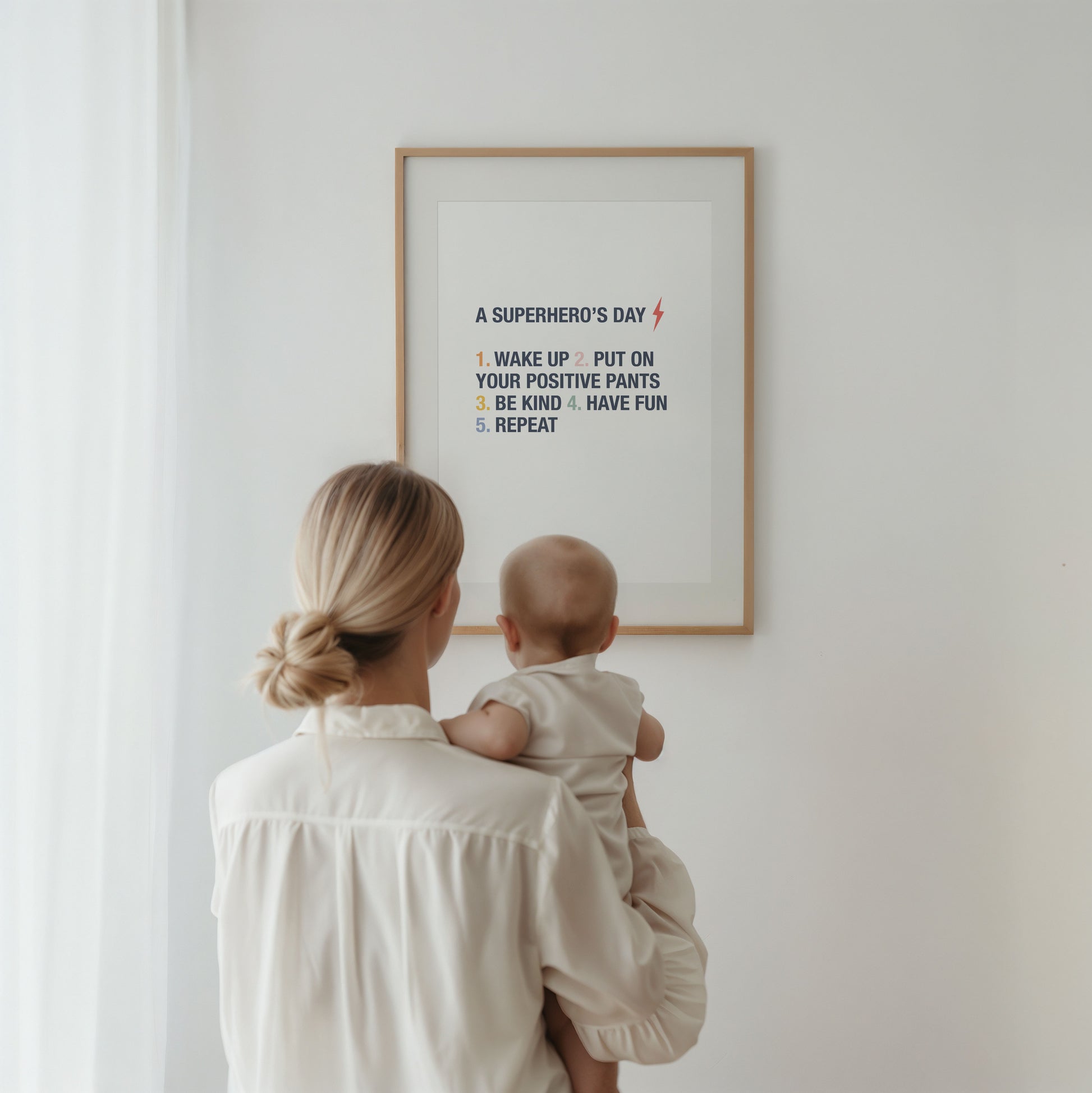 Transform your home into a fun and empowering space for all the family with these playful superhero inspired 'rules'. Make reciting them together part of your daily routine and create lasting memories with your little one as they grow.