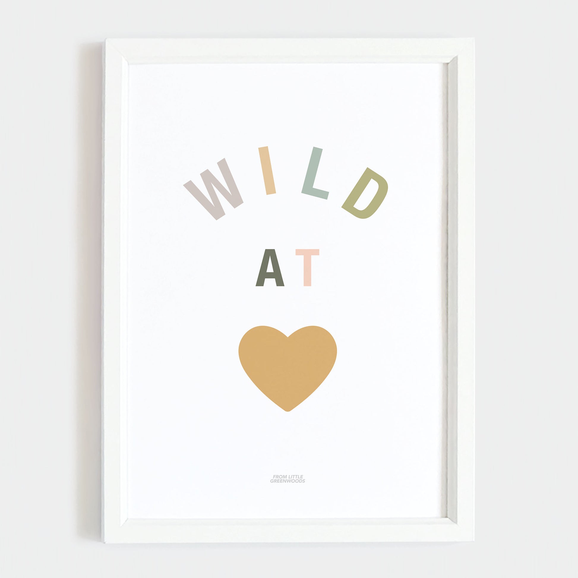This playful Wild at Heart Phrase Print in muted neutral tones inspired by the soft and calming hues of the African plains, is the perfect decor for a newborn's safari themed nursery or kid's jungle bedroom.